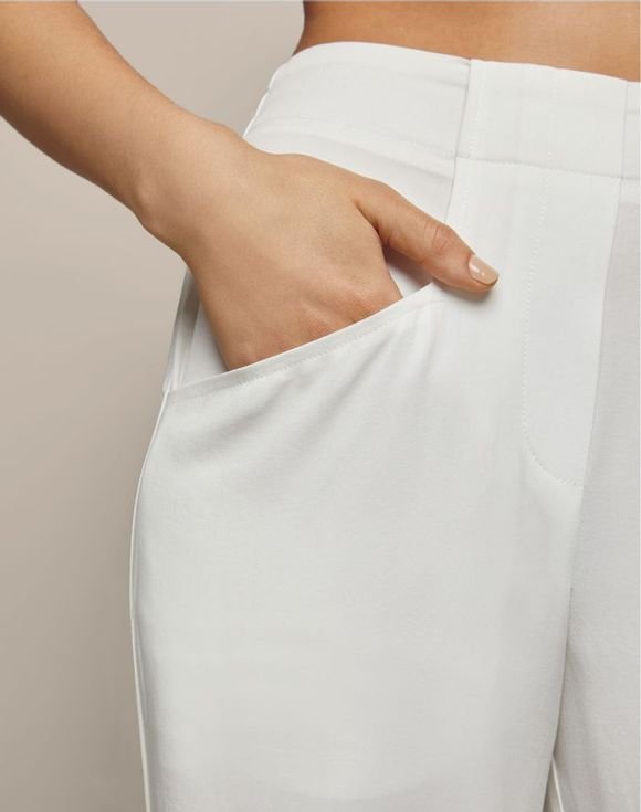 • Flat-front waist with elastic back