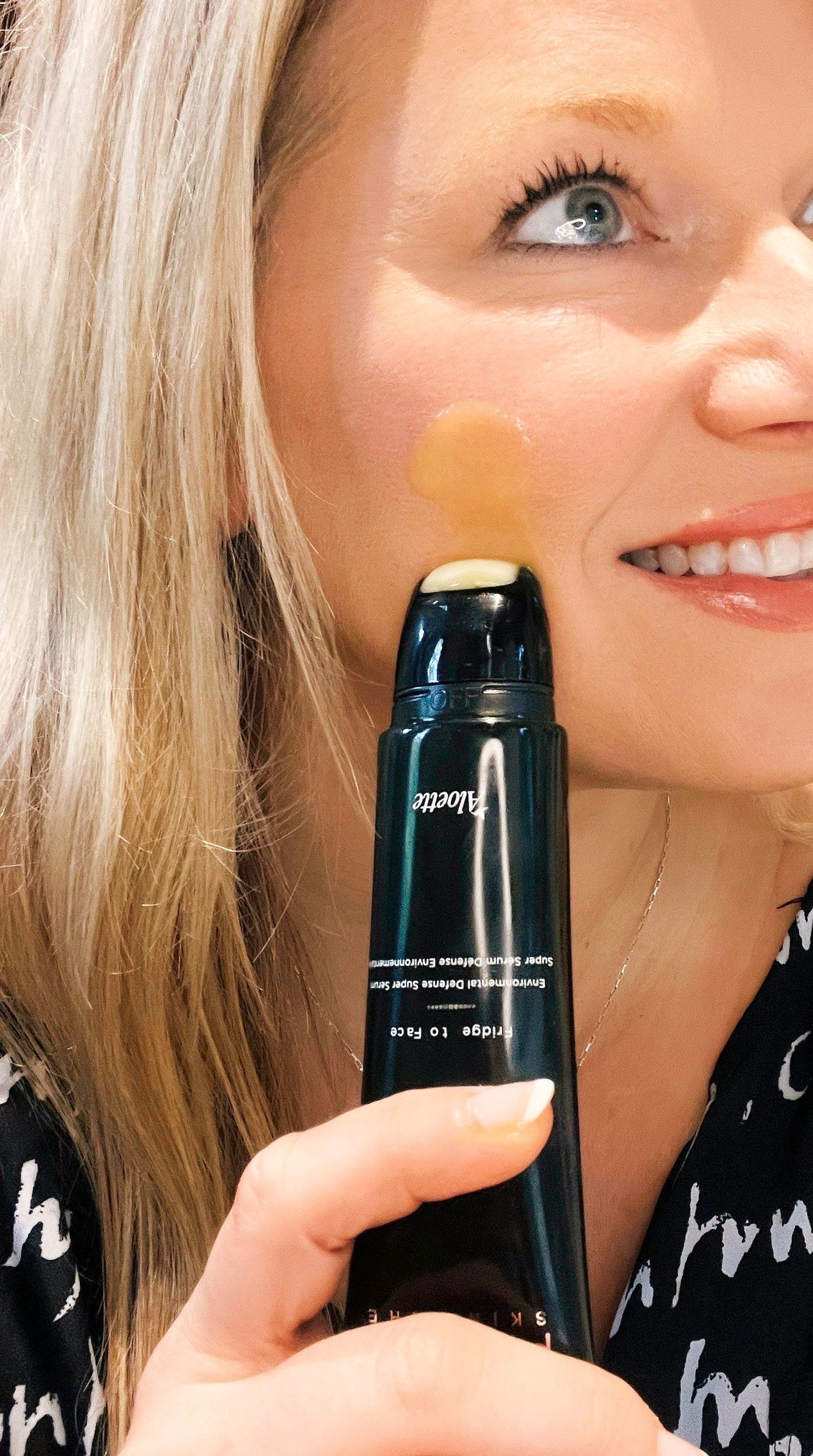 Store the serum in the fridge for a refreshing application. After cleansing and toning, remove it from the fridge and twist to the “on” position. Gently roll over your face and around your eyes, applying in an upward motion to enhance absorption. Allow the serum to absorb fully, then twist back to “off” to prevent leaks. For best results, follow with your favorite Aloette moisturizer.