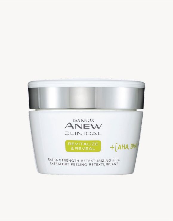 Avon’s most concentrated peel is an at-home, professional-grade treatment that helps to retexturize and resurface skin in one easy step. Contains glycolic acid, an alpha hydroxy acid (AHA) to help give skin a smoother, brighter appearance, and beta hydroxy acid (BHA) to provide pore-clearing benefits. Reveal your radiance and see results superior to a 35% pro glycolic peel.* 30 pads. Each, 2” diam.