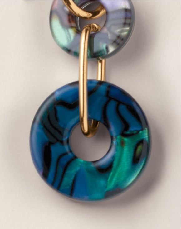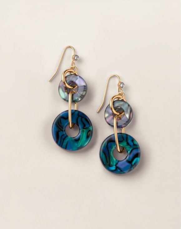Make a sea-inspired fashion statement with a bold pair of iridescent earrings. Goldtone links are decorated with cascading abalone-like stones that catch the light beautifully.