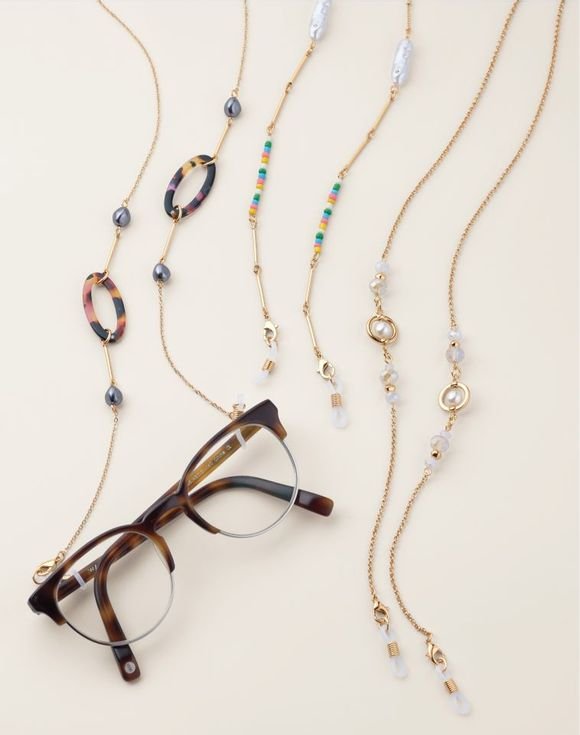 Dress up your eyewear with stylish goldtone chains featuring charming adornments and never misplace your glasses again. Available in three styles: pastel, pearly and mist.