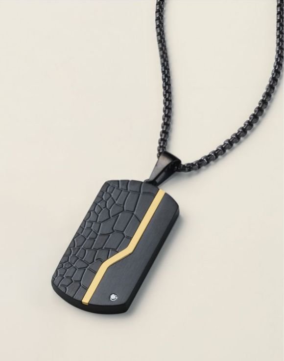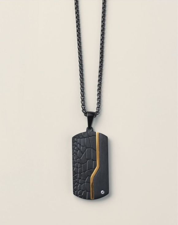 A bold everyday accessory that embodies cool contrast, this dog-tag necklace is built for durability and features a bold black textured design made from stainless steel paired with goldtone accents.