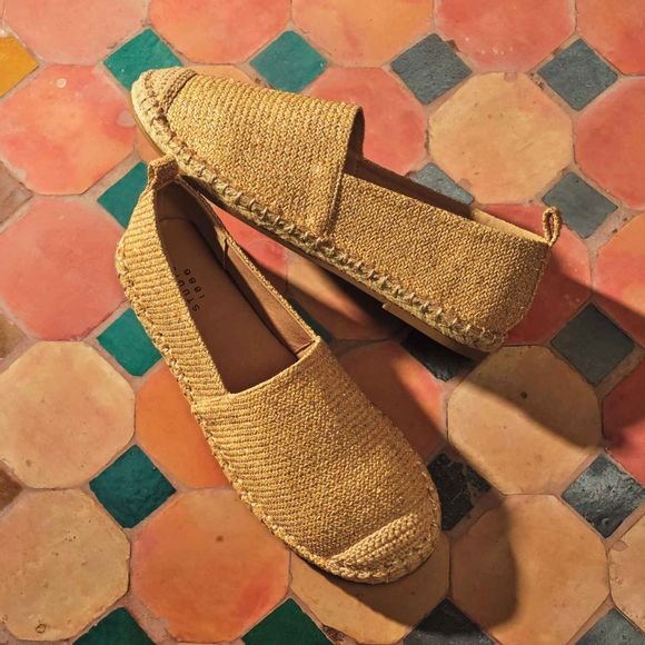Crafted with a golden woven design, this metallic espadrille is made for sun-drenched strolls along the beach. Styled with a back pull-tab for easy on/off, this sophisticated yet laid-back pair features a jute rope midsole, knit fabric toe cap and rubber outsole. Half sizes, order one size up. Imported.