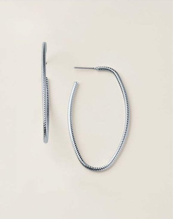 Sleek with a twist — these hoop earrings add a fresh spin on a classic. Featuring a sculptural look in your choice of goldtone or silvertone, these hoops add instant edge and shine.