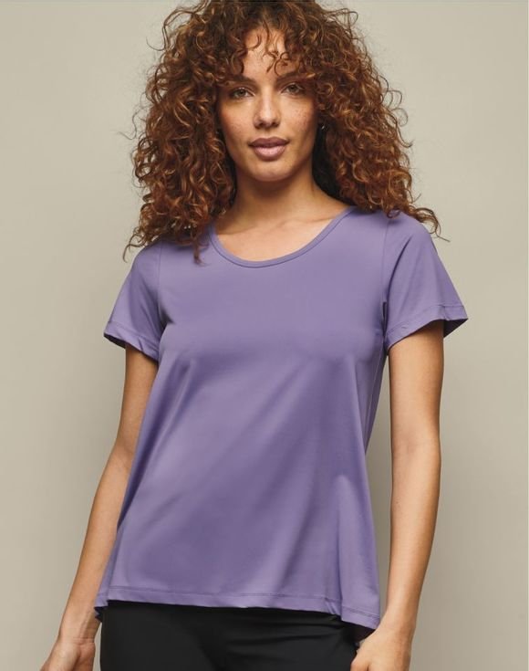 For days when you want to feel at ease, opt for an oversized, relaxed tee to complete your casual look. Featuring a pretty lilac hue, this flowy look has a V-neckline and short sleeves. Center back length: 25″on M; 26½” on 1X. Imported.