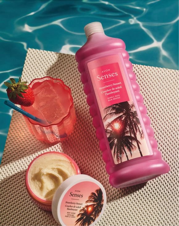 Sail away to a Caribbean summer night with a sweet and refreshing blend of luscious strawberries kissed by the warmth of the setting sun, a hint of pink magnolia and crushed mint. With apricot-seed powder. 8.5 oz. net wt.