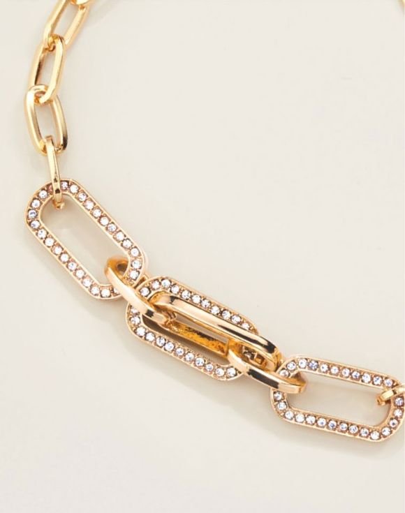 Classic lozenge links take a luxurious turn in this striking bracelet. Three center links sparkle with pavé accents, adding understated elegance to this versatile accessory. Matching necklace and earring set and ring set also available.