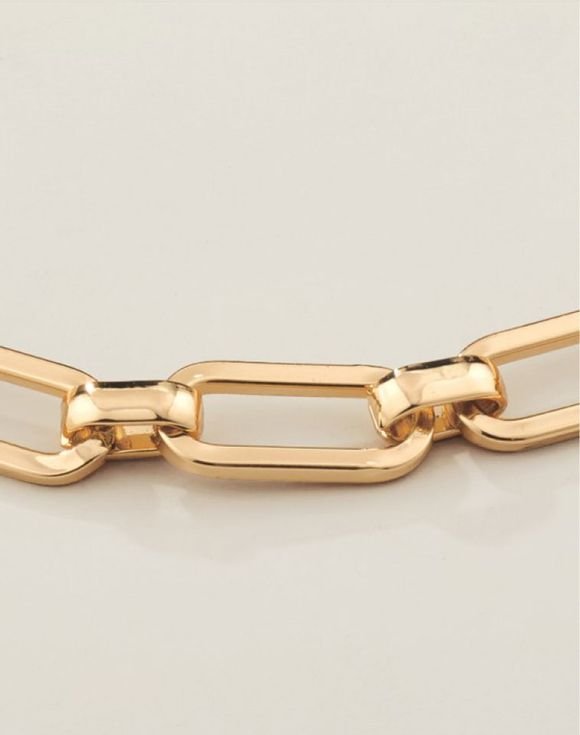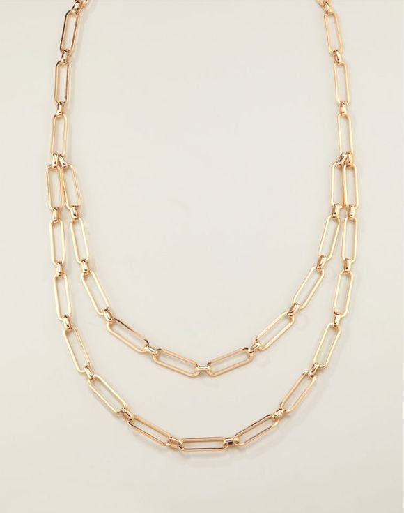 Versatile and modern, this this layered necklace with elongated paperclip-style links is easy to pair with other pieces or wear it on its own for a more understated vibe. Matching bracelet and earrings also available.