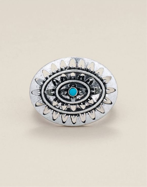 With a textured antiqued silvertone finish and a turquoise-colored center, this eye-catching design brings vintage western vibes to your everyday look.